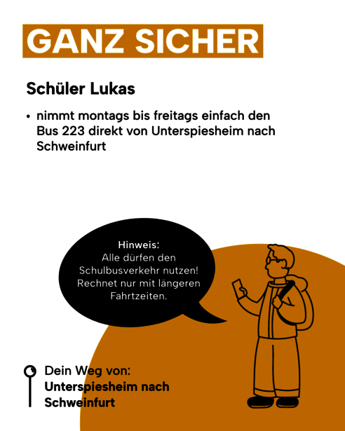 Bei der Planung haben wir natürlich auch Ihre Wünsche und Anliegen aus Befragungen und Bürgerworkshops berücksichtigt. Es werden ein vollständig überarbeitetes Streckennetz sowie optimierte Fahrpläne der Regionalbuslinien - bei denen der Landkreis Schweinfurt Aufgabenträger ist - eingeführt.