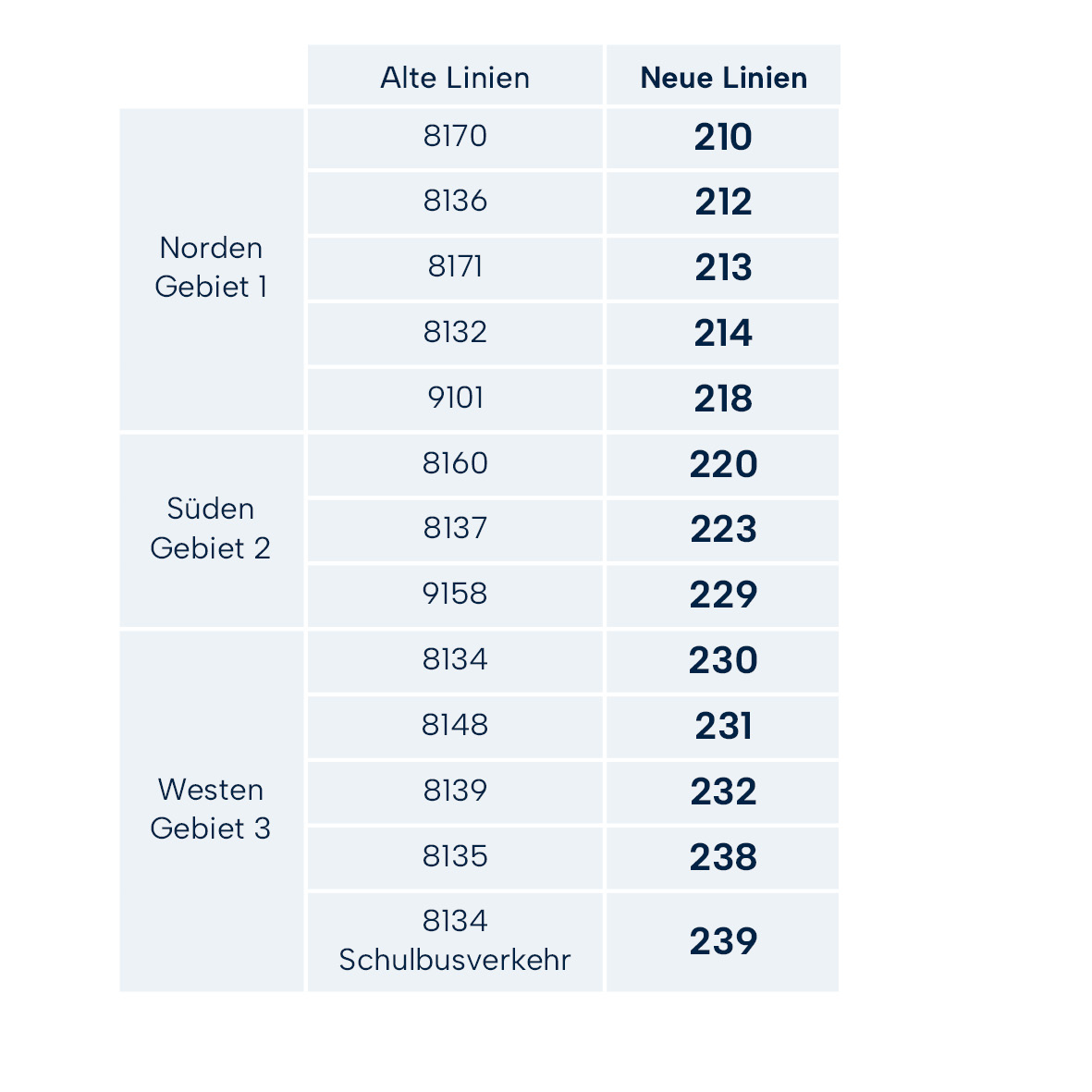 Bitte beachten Sie jedoch, dass sich hier ebenso teilweise eine neue Linien-Nummerierung ergibt (siehe dazu neuer Liniennetzplan ab dem 15. Dezember)