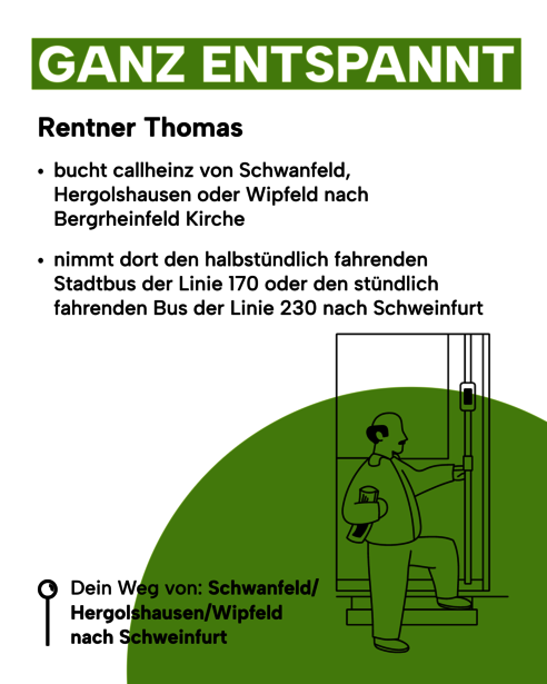 Im Kern besteht der neue ÖPNV aus Haupt- und Nebenlinien sowie Schulbusverkehr und dem Mobilitätsservice callheinz. Ergänzt wird das Ganze durch weitere zur Verfügung stehende ÖPNV-Angebote (Stadtbus, Bahn, Linien anderer Aufgabenträger), so dass der gesamte Landkreis Schweinfurt in einer noch nie dagewesenen hohen Taktung an die Region Mainfranken angebunden ist.