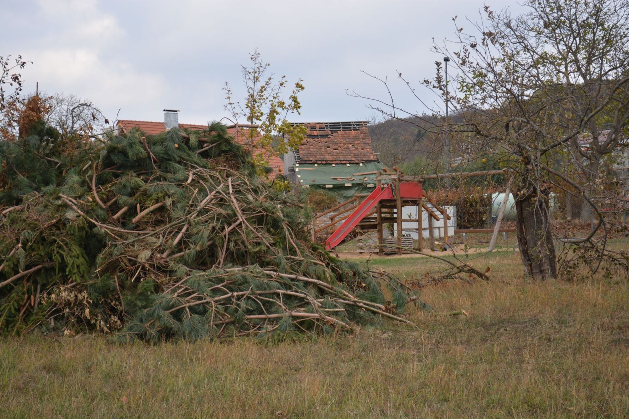 Seit der Sturm „Fabienne“ am Sonntagnachmittag des 23. September durch den Ort fegte, verging in Schönaich quasi kein Tag, an dem nicht gesägt, gehämmert und gekehrt wurde, wie Bürgermeister Manfred Schötz dem Landrat bei einem Ortsrundgang berichtete. Mit dabei war unter anderem auch Gemeinderatsmitglied Peter Trapp aus Schönaich. Zahlreiche Dächer hatte der Wind abgedeckt, große Bäume waren umgeknickt wie Streichhölzer. „Wir sind mittlerweile auf einem guten Weg“, sagte Andreas Uri, der stellvertretende örtliche Feuerwehrkommandant. Vor allem die Schäden an den Hausdächern haben die Schönaicher schnell behoben. Teils war professionelle Unterstützung gefragt, viel lief jedoch auch durch gemeinschaftliche Nachbarschaftshilfe. „Das war und ist einfach schon immer so: hier hilft jeder jedem“, erinnerte der ehemalige Feuerwehrkommandant von Schönaich Martin Dürrfuß.