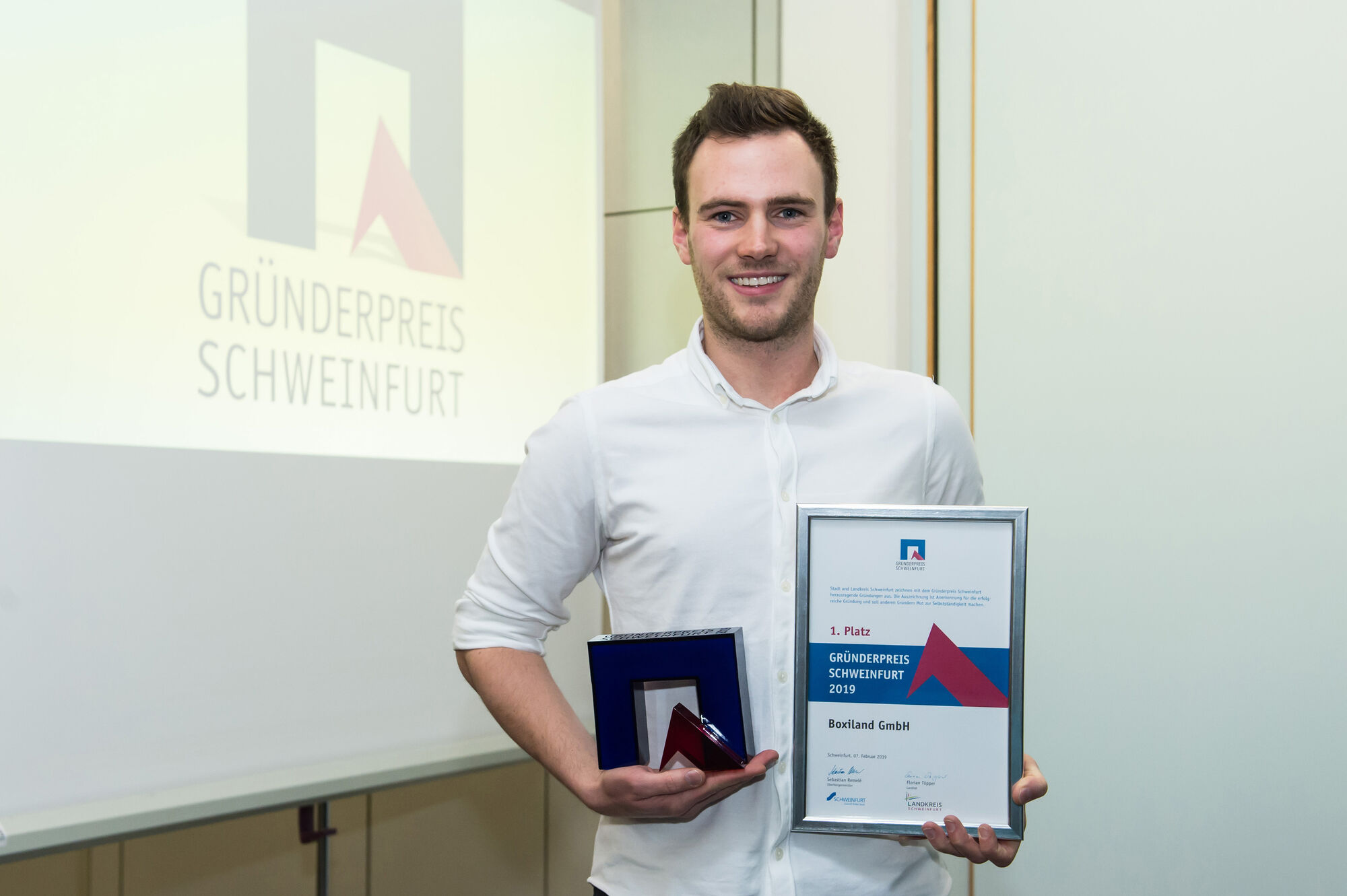 Der mit 5.000 Euro dotierte erste Preis ging an Julian Wildanger aus Geldersheim für seine Unternehmensgründung „Boxiland GmbH“.