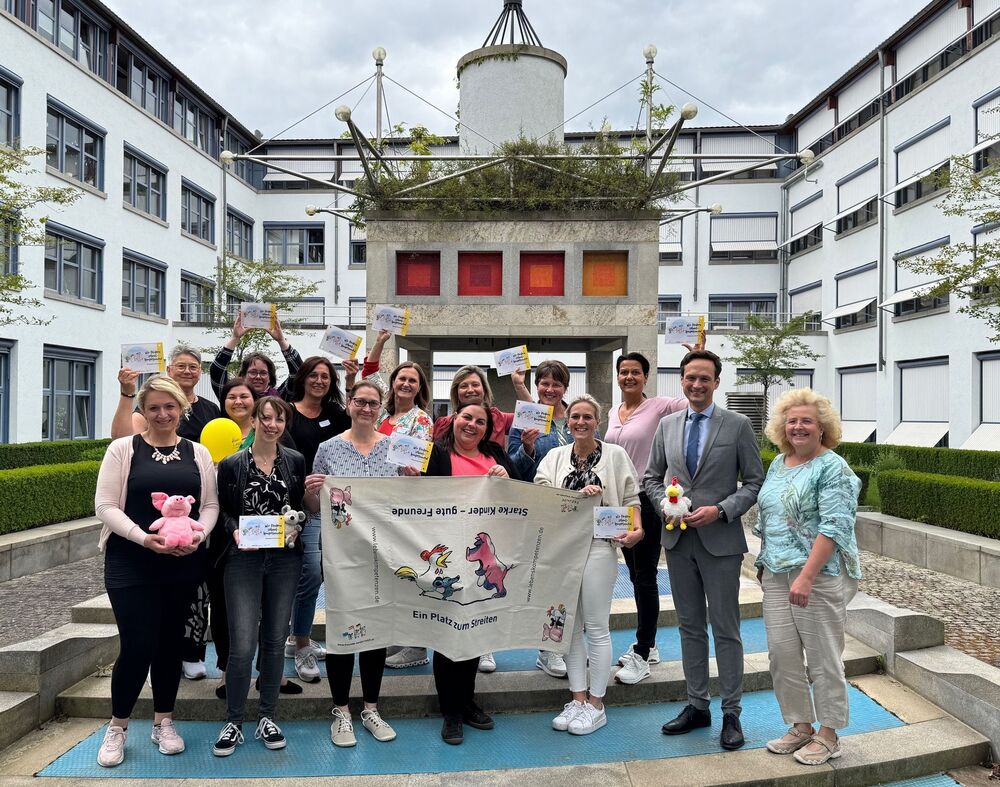 Landkreis Schweinfurt. Landrat Florian Töpper hat den Leitungsteams von zehn Kindertagesstätten aus dem Landkreis Schweinfurt das Zertifikat zur erfolgreichen Teilnahme am Programm „FREUNDE“ überreicht. Die Auszeichnung beinhaltet ein Schild aus Acrylglas, durch das die Zertifizierung in den Kitas sichtbar gemacht werden kann.