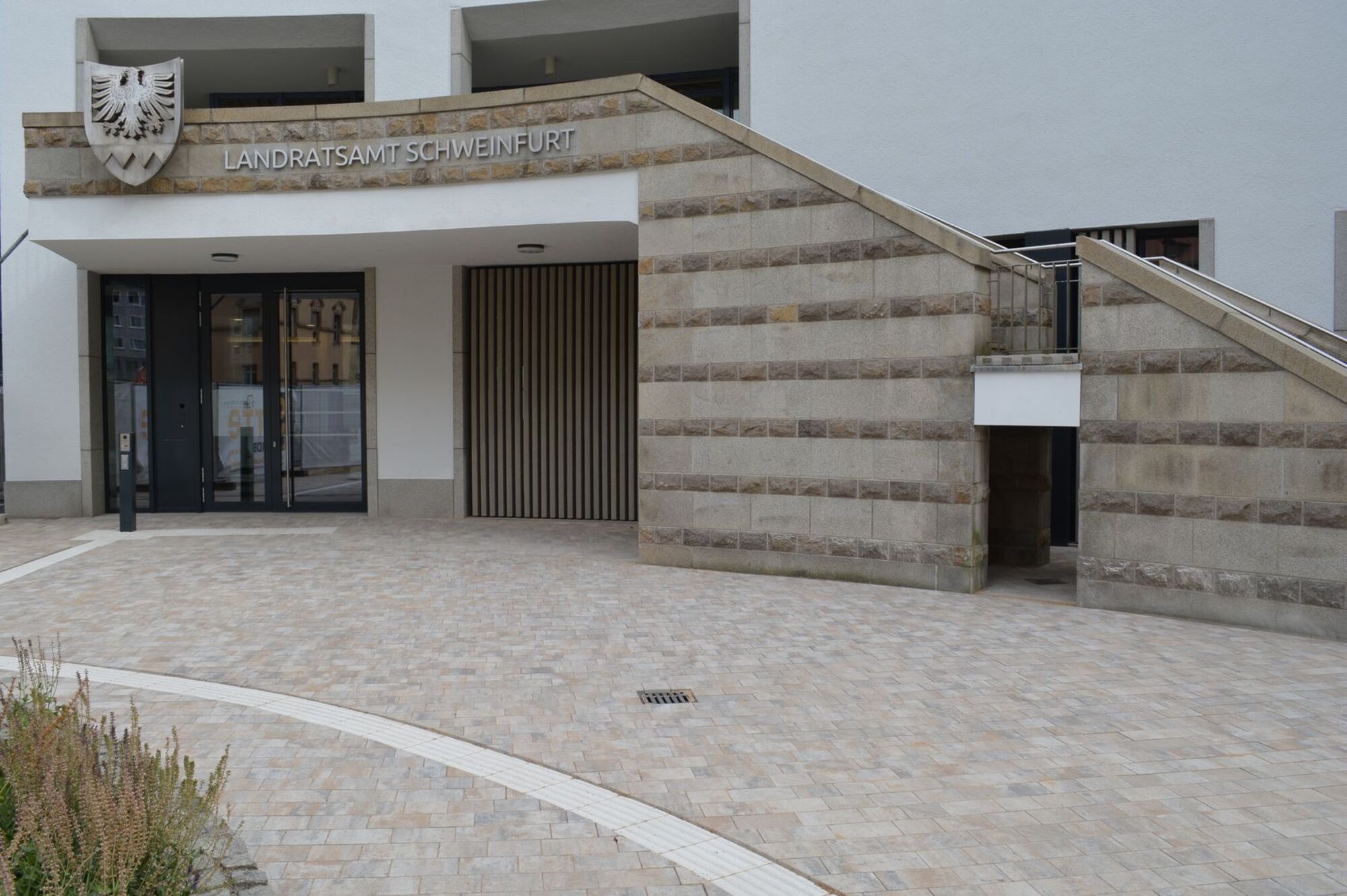 Landkreis Schweinfurt. Nach nicht ganz einem Jahr Bauzeit ist am Landratsamt Schweinfurt am Montag, 8. Juli 2019, das umgebaute Foyer mit neuem Bürgerservice in Betrieb gegangen. Der Haupteingang zum Gebäude befindet sich nun wieder an gewohnter Stelle Richtung Schillerplatz. Das hintere Foyer an der Seite der Gunnar-Wester-Straße diente letztmalig am 5. Juli als Eingang. Der Seiteneingang vom Parkplatz aus bleibt wie gewohnt geöffnet.