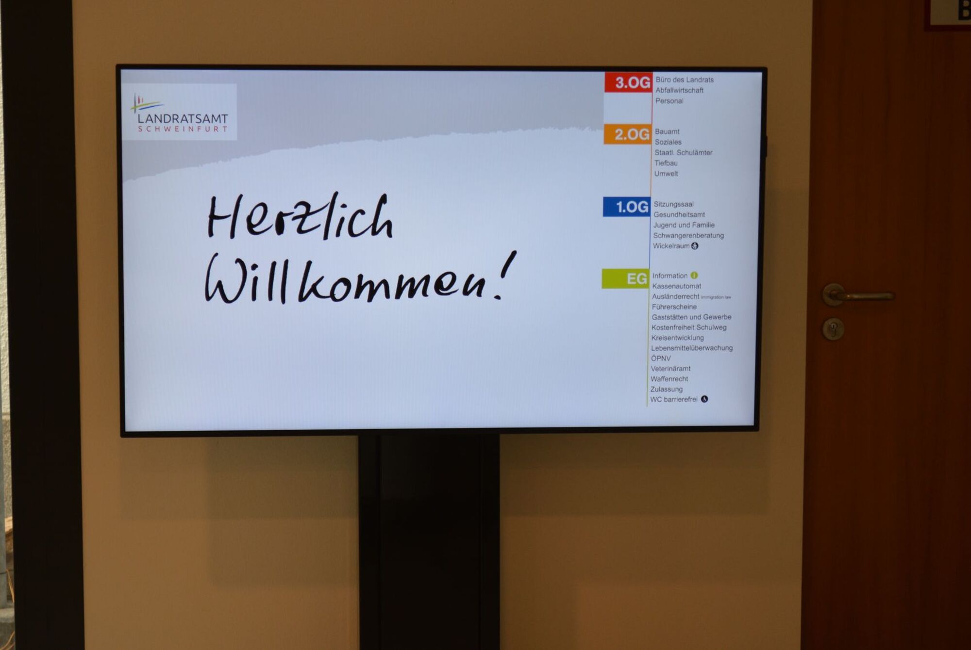 Im großen Eingangsfoyer befindet sich neben einer zentralen Aufrufanlage für das Ausländerrecht und die KFZ-Zulassungsstelle (später nach weiteren Umzügen auch für das Fahrerlaubniswesen) ein neuer zentraler Wartebereich (stehend und sitzend) mit neuen Besucher-WCs. Auch für die kleinen Besucher des Hauses wird das Warten mit einer neuen Kinderspielecke künftig angenehmer sein. Im Foyer steht zudem kostenloses Internet (Bayern WLAN) zur Verfügung.