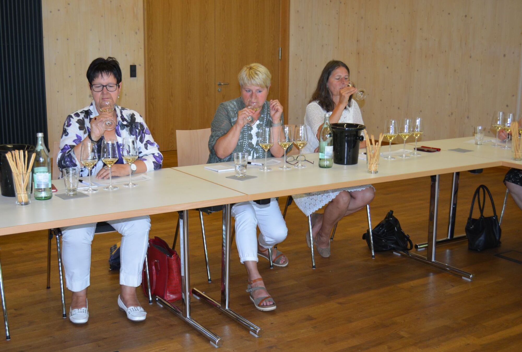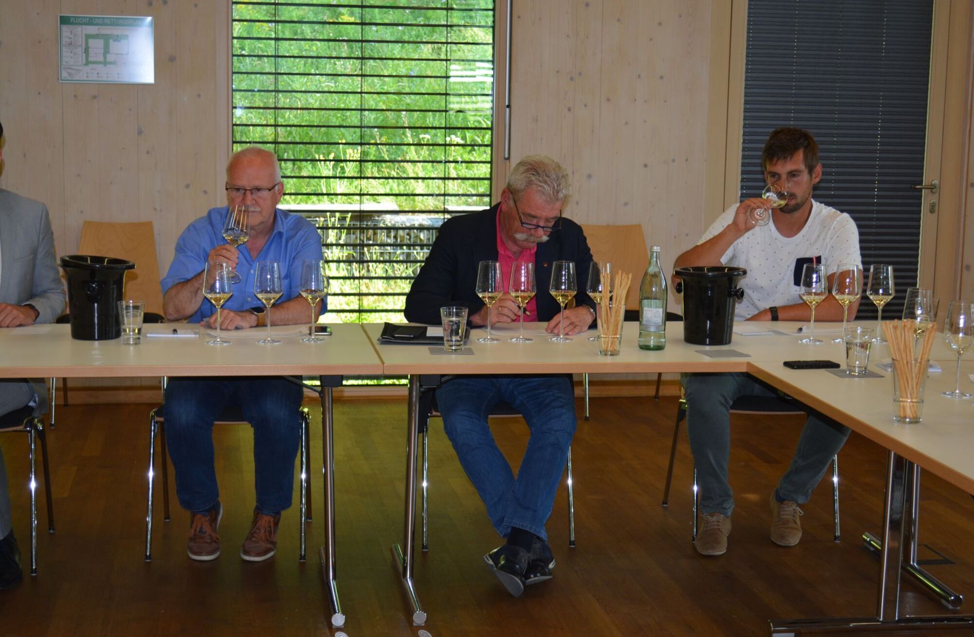 Hermann Mengler, Leiter der Weinfachberatung des Bezirks Unterfranken, moderierte die Blindverkostung im Steigerwald-Zentrum. In seiner Einstimmung erläuterte der Weinexperte zunächst die unterschiedlichen Rebsorten, die zur Verkostung standen, und gab den Juroren einen kurzen Einblick in die Welt der Wein-Sensorik. Neben Vertretern aus Politik, Weinbau und Tourismus, saßen auch die Fränkische Weinkönigin Carolin Meyer sowie die beiden Landkreiswein-Winzer des vergangenen Jahres in der Jury.