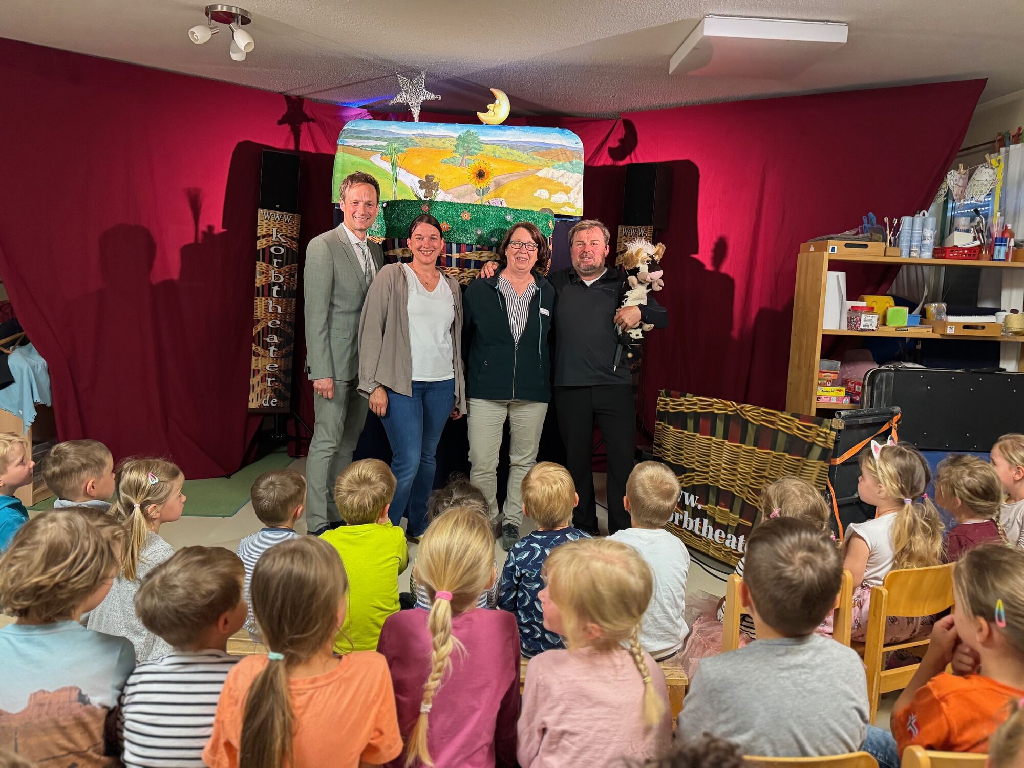 Landrat Töpper bedankte sich bei Abfallberaterin Monika Böhm-Weniger für die sehr gelungene Organisation des Angebots, ebenso dankte er dem Umweltausschuss des Kreistags, der die Förderung des Umwelttheaters einstimmig beschlossen hat, sowie Kindergartenleiterin Nathalie Koch und ihrem gesamten Team für die Gastfreundschaft bei seinem Besuch im Kindergarten St. Christophorus.
