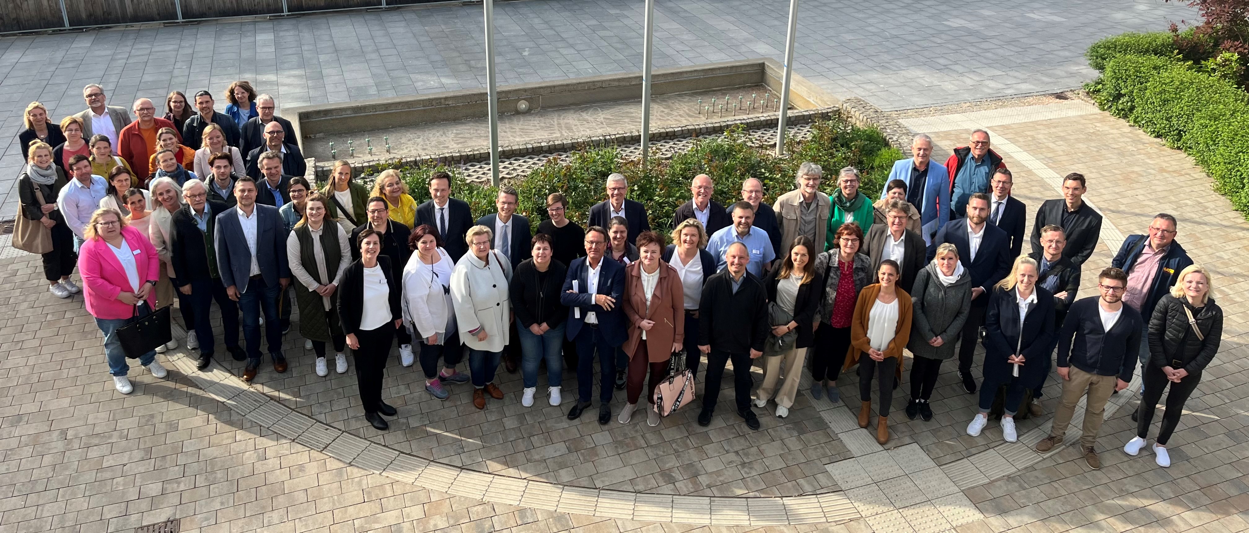 Der Einladung zum konstituierenden Treffen waren rund 70 regionale Akteure gefolgt. Landrat und Oberbürgermeister freuten sich über das große Interesse und dankten allen Teilnehmenden für ihr Mitwirken: „Ihr zahlreiches Erscheinen zeigt einmal mehr, wie wichtig es ist, beim Thema Pflege zusammenzuarbeiten. Gemeinsam erreichen wir eine nachhaltige Versorgung für unsere Bürgerinnen und Bürger und stärken damit auch das Berufsfeld Pflege insgesamt.“
