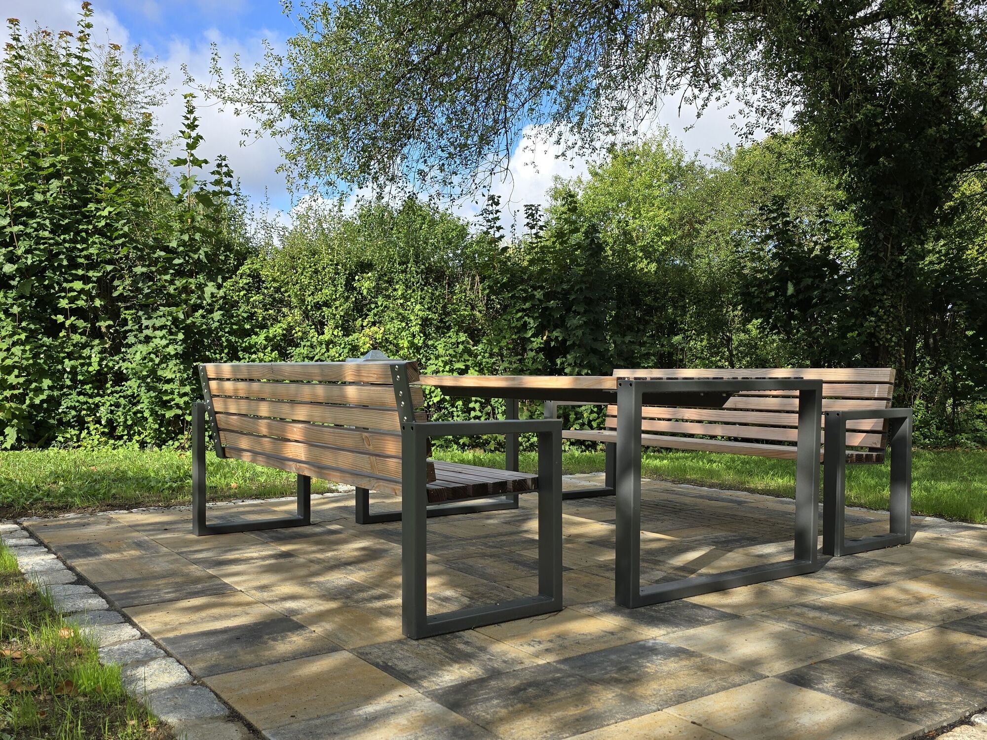 Die Vorstandsmitglieder des Vereins der Freunde und Förderer der Geomed-Kreisklinik e.V. entschlossen sich schnell, drei Sitzgruppen mit je einem Tisch und zwei Sitzbänken zu finanzieren. Beauftragt wurde die Lebenshilfe Sennfeld.