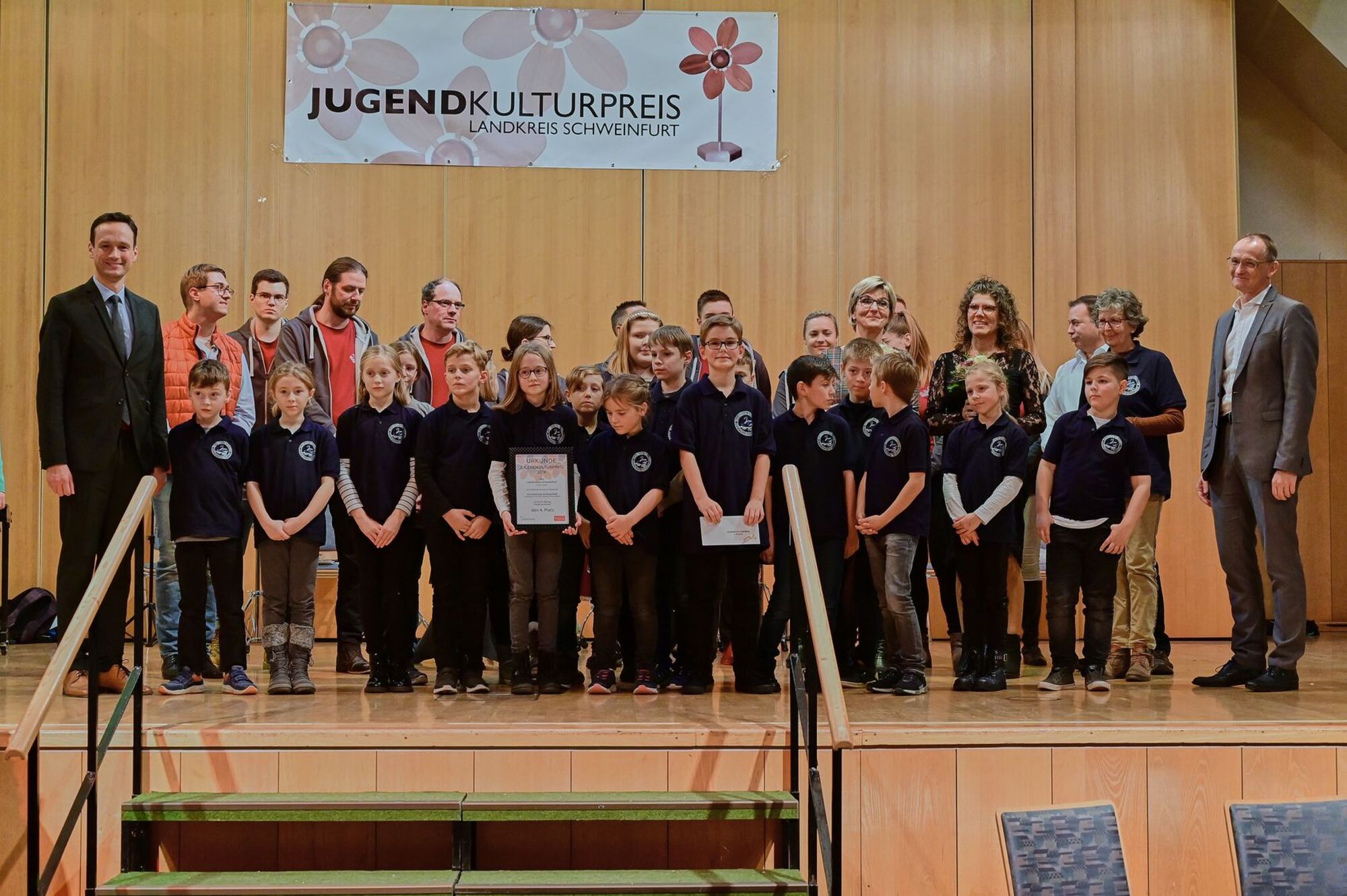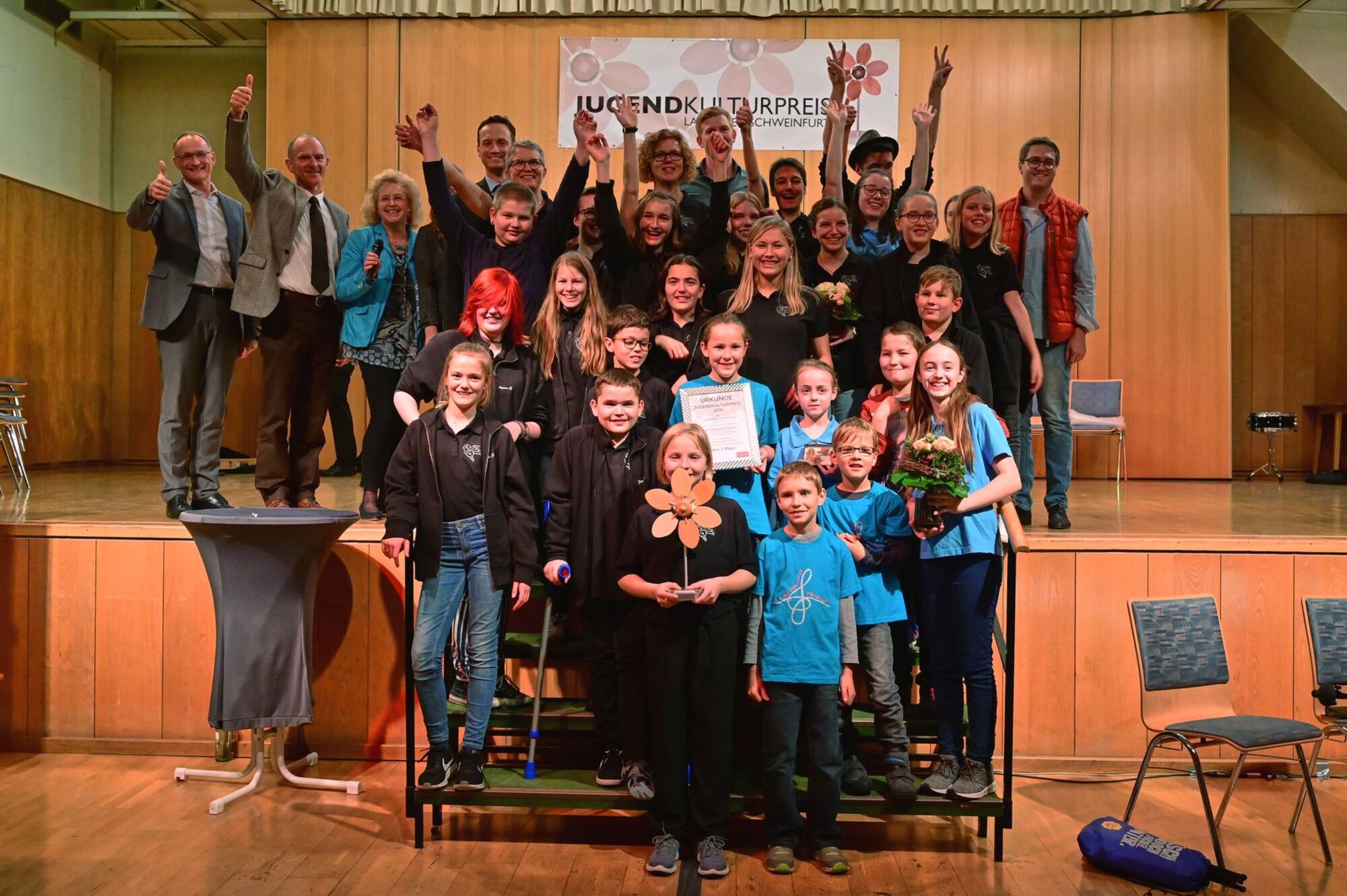 Landkreis Schweinfurt. Der diesjährige Jugendkulturpreis des Landkreises Schweinfurt geht nach Michelau für ein Gemeinschaftsprojekt der dortigen Heimatkapelle und katholischen Landjugendbewegung. Rund 180 große und kleine Landkreisbürger wollten sich die Preisverleihung in der passend zum diesjährigen Thema „Musik“ geschmückten Fritz-Zeilein-Halle in Gochsheim nicht entgehen lassen. Sie erlebten einen abwechslungsreichen Nachmittag, an dessen Ende Gastgeber Landrat Florian Töpper nicht nur die Leistung der Sieger, sondern aller vier teilnehmenden Gruppen würdigte.