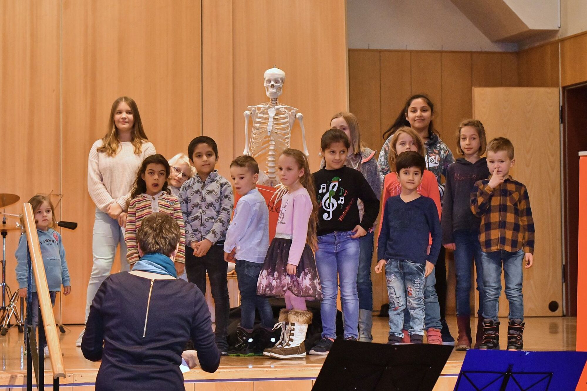 Der Singkreis für Kinder aus Gerolzhofen führte das Publikum auf eine Reise durch die Zeit und führte Teile aus ihrem Musical „Die unglaubliche Reise mit der Zeitmaschine“ vor. Mit viel Einsatz motivierten Ute Höfner und Nicola Theobald die Kinder im Alter bis elf Jahren zum Singen und Tanzen.
