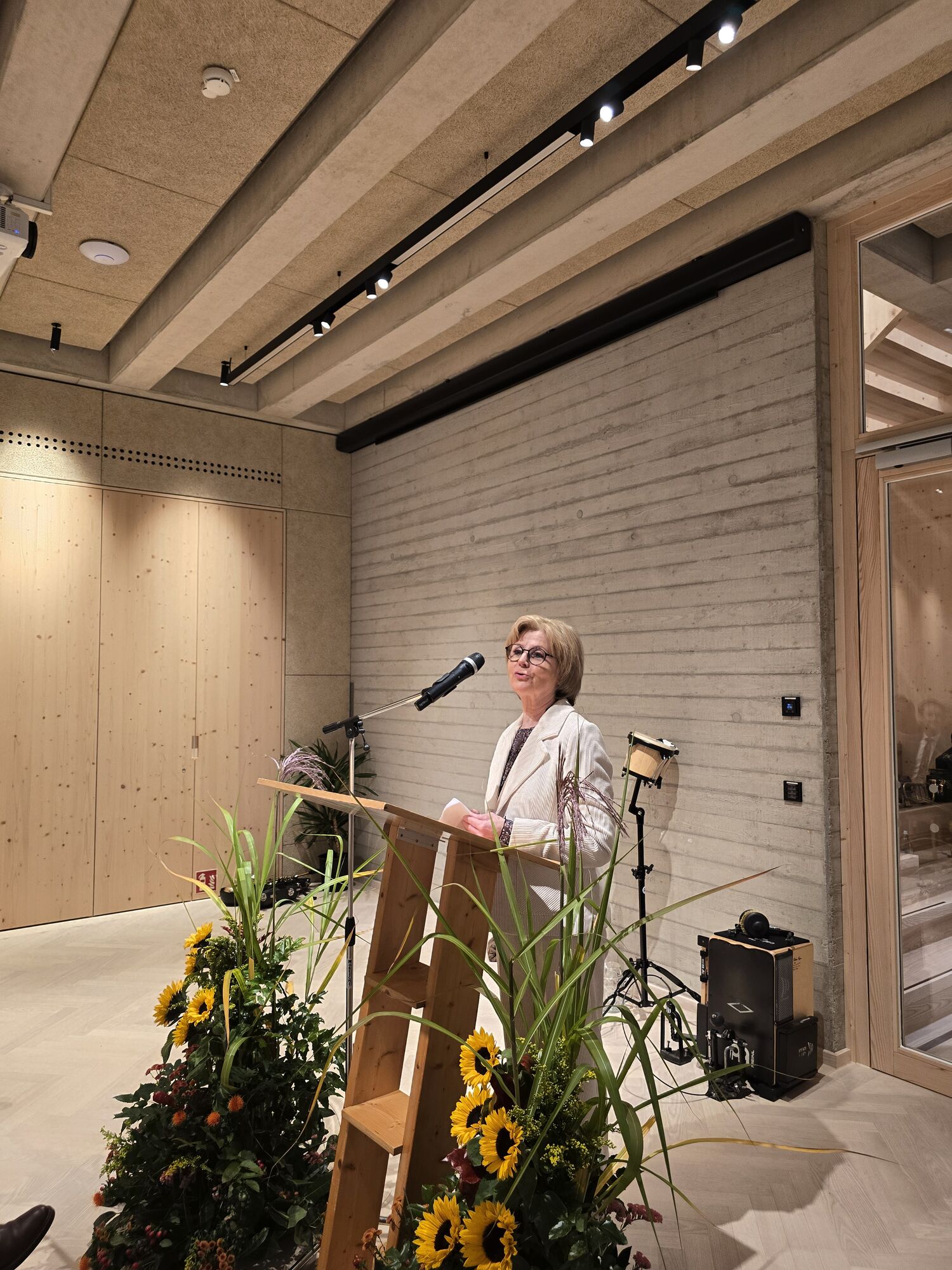 Den idealen Raum für das Zusammenkommen der Kultur bot in diesem Jahr das Bürgerzentrum „MittenIm“ in Niederwerrn. Niederwerrns Erste Bürgermeisterin Bettina Bärmann stellte das vor gut einem Jahr eröffnete Gebäude vor, das mit Trausaal, Bürgersaal und Café als Gemeindezentrum und Verbindungsstück zwischen Altort und Neubaugebiet fungiert und auch für die Kultur neue Möglichkeiten bietet.