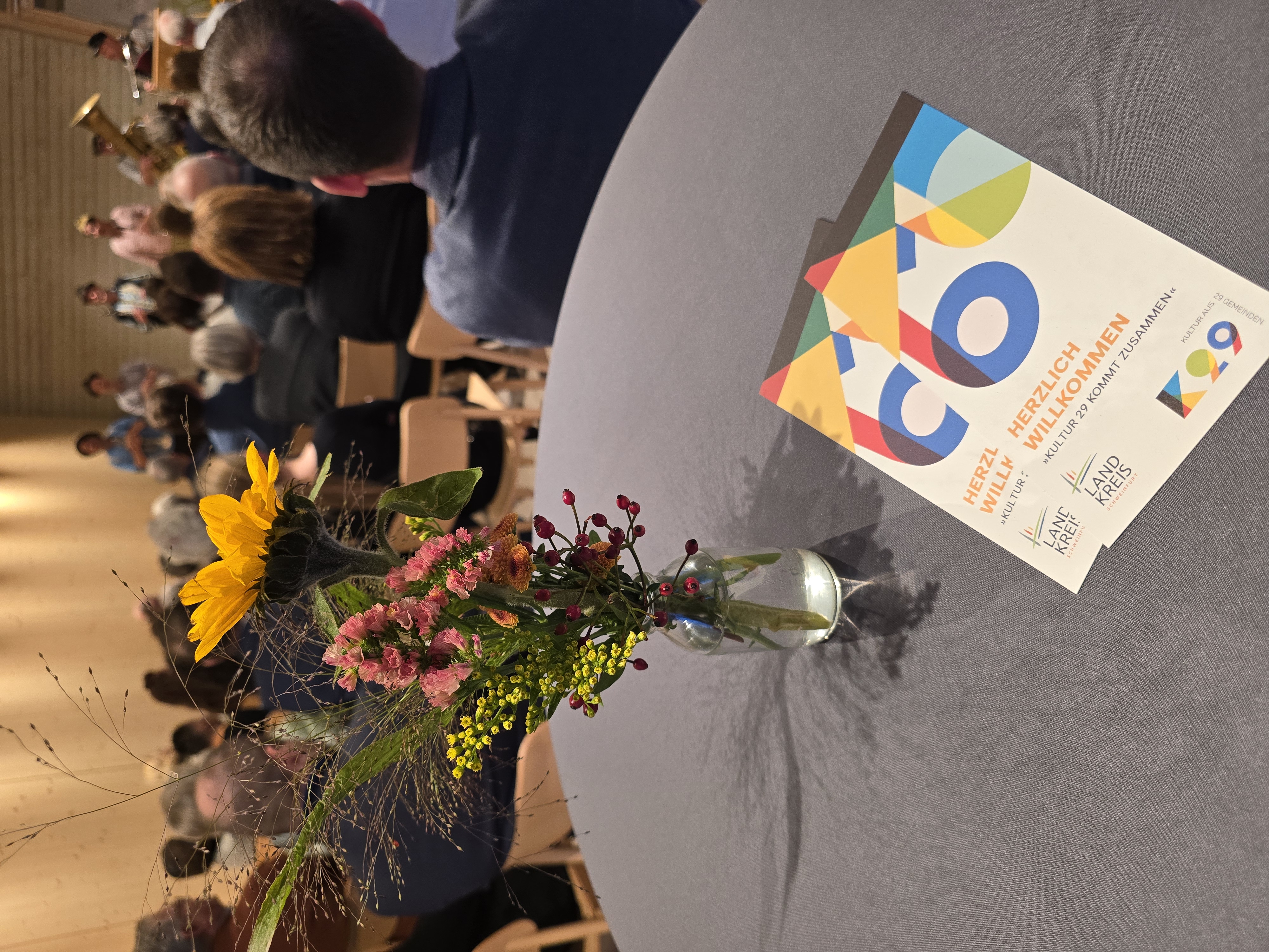 Landkreis Schweinfurt. „Kultur 29 kommt zusammen.“ Unter diesem Motto begrüßte Landrat Florian Töpper die rund 60 Gäste der diesjährigen Kultur-Veranstaltung des Landkreises Schweinfurt. Nach dem Auftakt vor zwei Jahren in Stadtlauringen und der ebenfalls sehr gut besuchten Veranstaltung im vergangenen Jahr in Gerolzhofen, fand der Abend dieses Mal in Niederwerrn statt. „Kultur 29“ ist seit 2023 die Dachmarke für die Kulturarbeit des Landkreises.