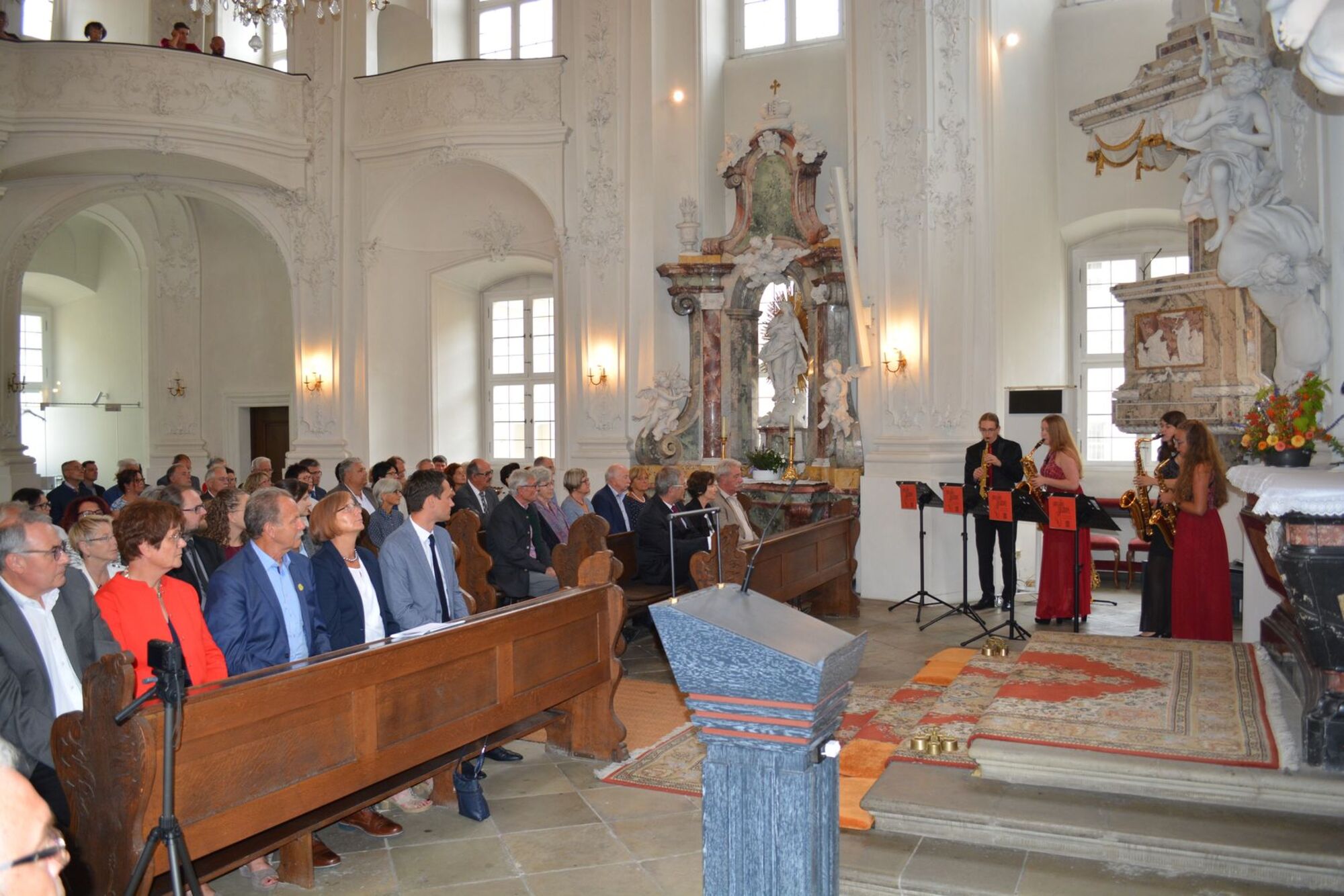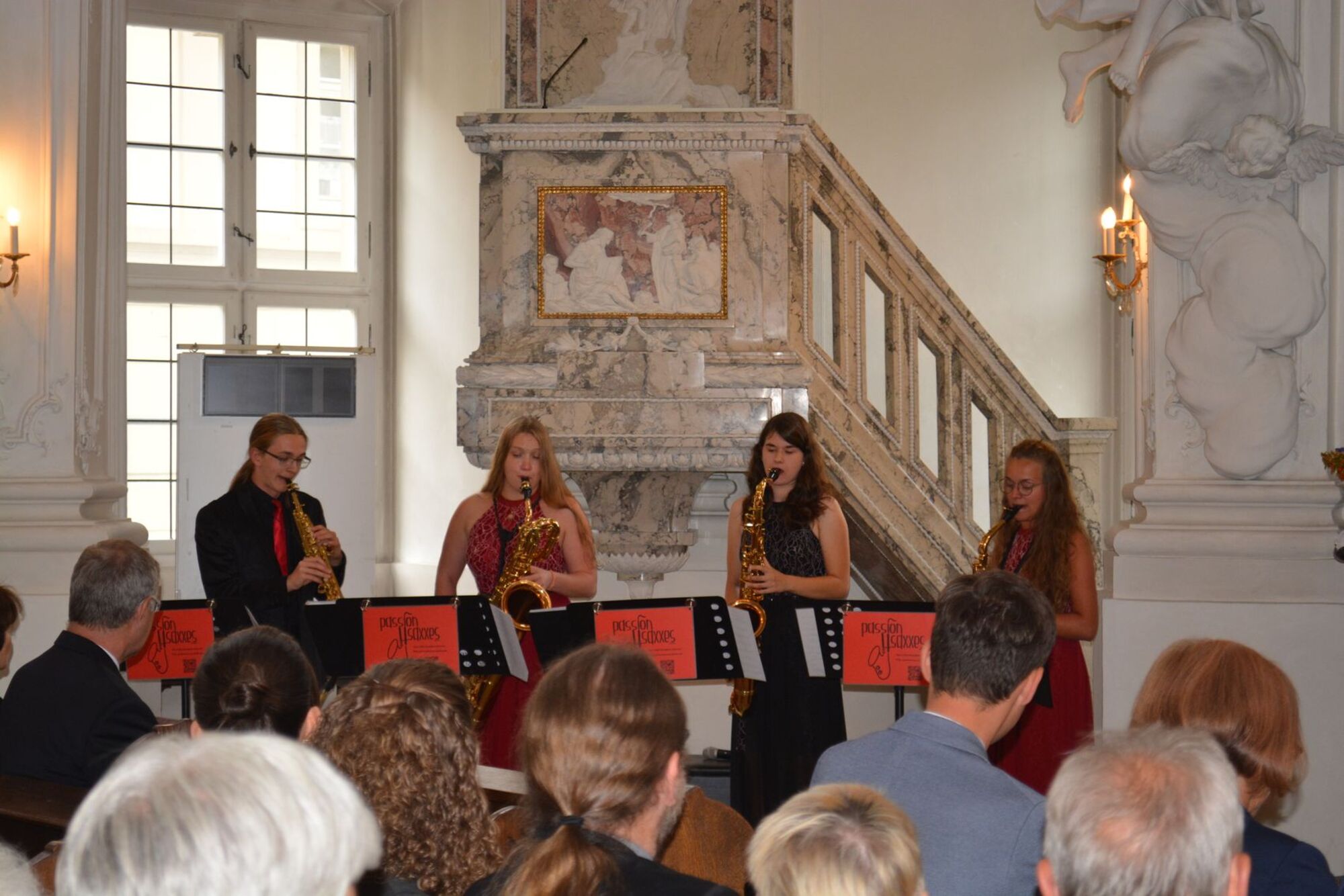 Zu Beginn des Abends erklangen in der Schlosskirche jazzige Töne beim Konzert des Saxophon-Quartetts „Passion4Saxxes“. Die jungen Künstler wurden schon mit diversen Preisen ausgezeichnet und zeigten ihr mit viel Applaus bedachtes Können mit einem vielseitigen Repertoire aus Jazz-Standards sowie Pop- und Rock-Klassikern. Die ehemaligen Schülerinnen und Schüler des Celtis-Gymnasiums spannten dabei den Bogen über „Fever“ von John Davenport über Queens „Bohemian Rhapsody“ und lateinamerikanische Klänge bis hin zu „Summertime“ von George Gershwin.