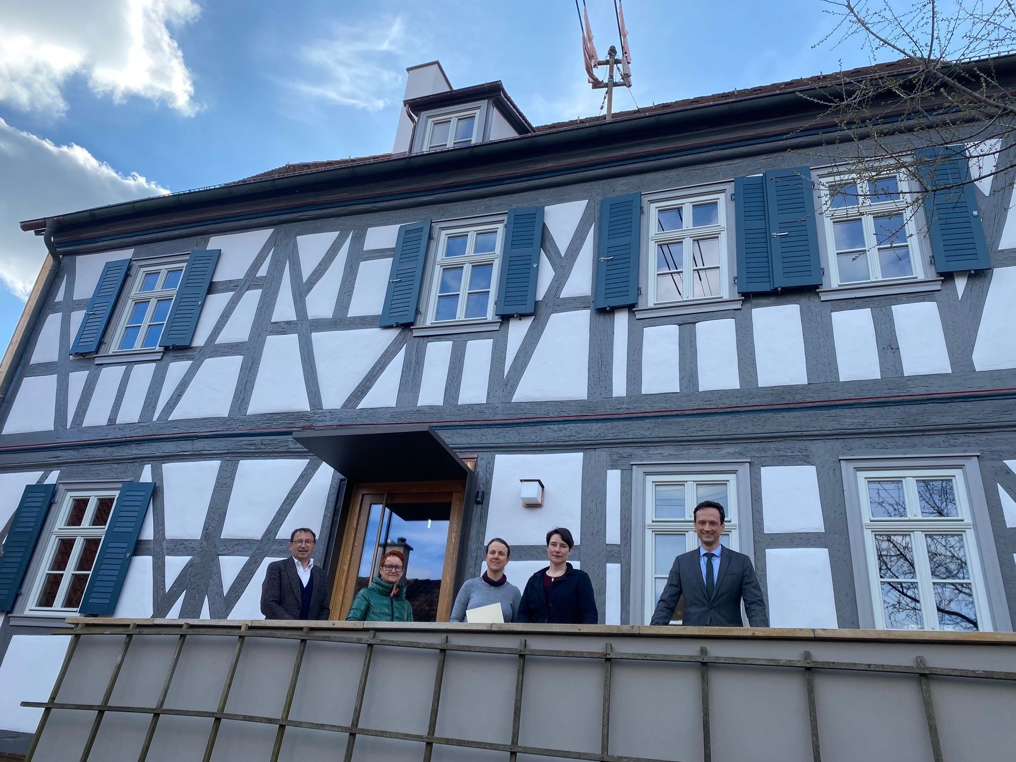 Der entsprechende Bewilligungsbescheid wurde Tanja Sobisch und Irmgard Wech am 6. April 2022 offiziell durch Herrn Landrat Florian Töpper im Beisein von Stadtlauringens 1. Bürgermeister Friedel Heckenlauer überreicht. „Ich bin sehr glücklich darüber, dass es Bürgerinnen und Bürger wie Tanja Sobisch und Irmgard Wech gibt, die größte Leidenschaft dafür aufbringen, ein baulich in die Jahre gekommenes, aber gleichwohl ortsprägendes und historisch bedeutendes Baudenkmal vollumfänglich und substanzschonend zu sanieren und wieder dauerhaft bewohnbar zu machen“, sagte Landrat Florian Töpper. „Das ist ein bedeutender Beitrag zur Innenentwicklung in unseren Ortschaften im ländlichen Raum und stärkt diesen immens. Dafür bin ich sehr dankbar.“