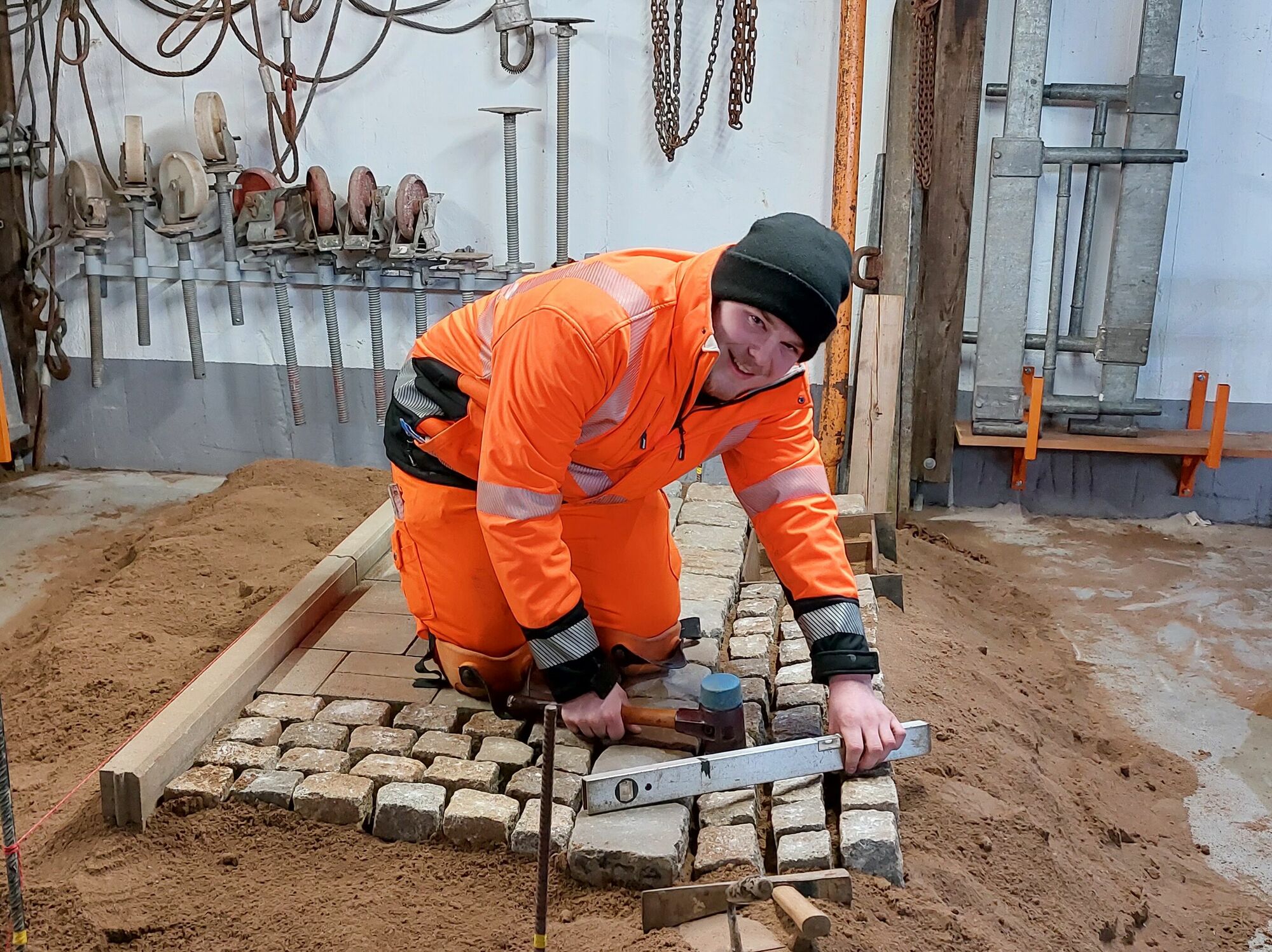 Nicht nur die abwechslungsreiche Tätigkeit macht ihm Freude, auch im Team fühlt er sich sehr wohl und erhält die Wertschätzung für seine Leistung. Genau wie Alisa ist Nico in bestimmten Wochen für den theoretischen Teil seiner Ausbildung an der Berufsschule in Würzburg. Die Themen „Verkehrssicherheit“, „Beton-und Mauerbau“ oder „Holzbau“ stehen genauso auf dem Stundenplan wie die „klassischen“ Schulfächer. Zwischen Theorie und Praxis warten immer wieder auch besondere Auszubildenden-Projekte auf die angehenden Straßenwärter. Kürzlich waren sie beim Bau einer neuen Sandsteinmauer vor der Filialkirche „St. Wendelin“ in Düttingsfeld eingebunden.
