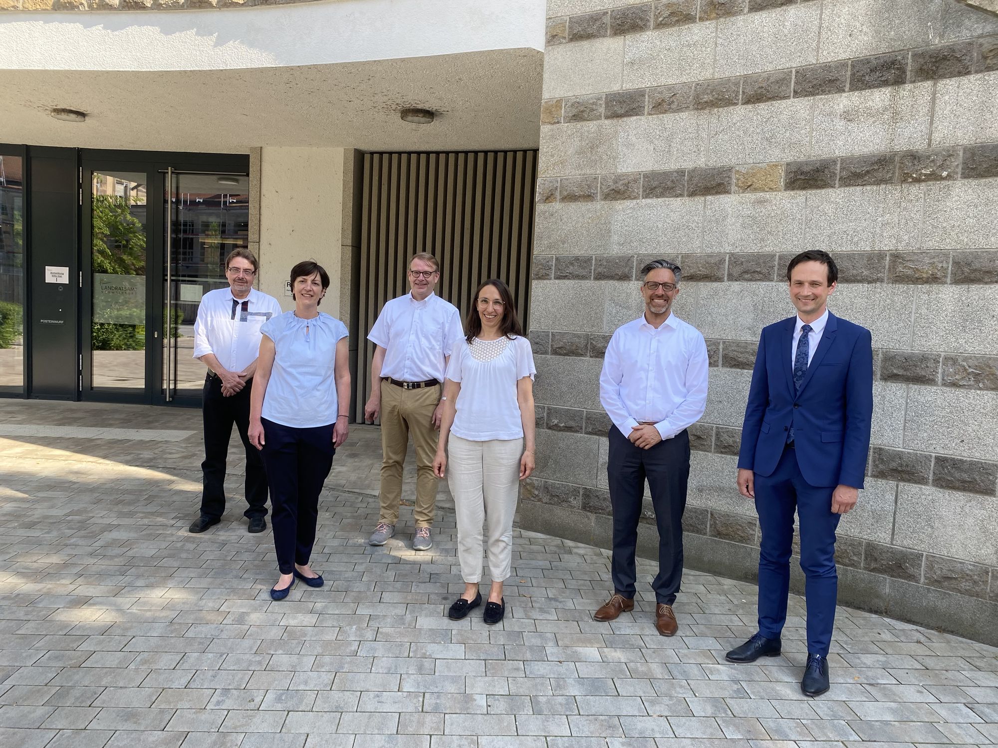 Die Ansprechpartner des Weiterbildungsverbunds Allgemeinmedizin Schweinfurt sowie die Arbeitsgruppe Landärzte der GesundheitsregionPlus Stadt und Landkreis Schweinfurt boten gemeinsam mit der Koordinierungsstelle Allgemeinmedizin (KoStA) einen Informationsabend im Landratsamt Schweinfurt zu den Themen Verbundweiterbildung und Weiterbildung Allgemeinmedizin für interessierte Ärztinnen und Ärzte an. Die Beteiligten tauschten sich auch über verschiedene Ideen für den Weiterbildungsverbund aus, der offiziell am 1. Juli 2022 mit der neuen Kooperationsvereinbarung in Kraft tritt.
