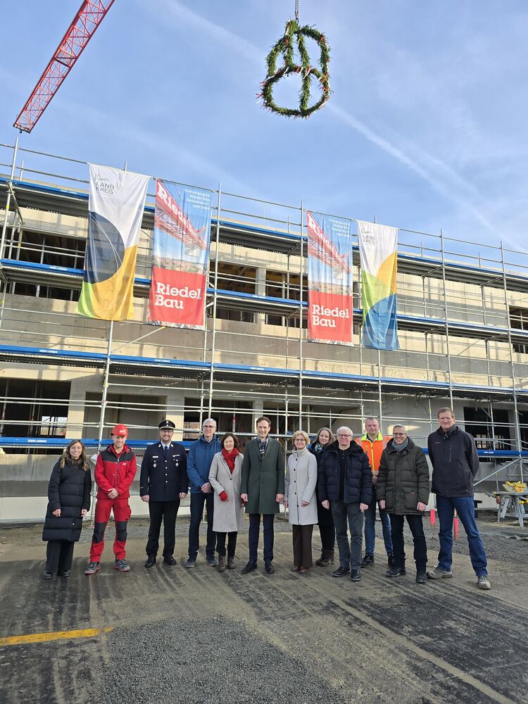 Den traditionellen Richtspruch sprach Polier David Ockel von der beteiligten Firma Riedel Bau. Auch er dankte unter anderem den Kollegen auf dem Bau und allen beteiligten Mitarbeiterinnen und Mitarbeitern. Lothar Meißner vom Planungsbüro FMP gab zudem noch weitere Erklärungen zum Neubau.
