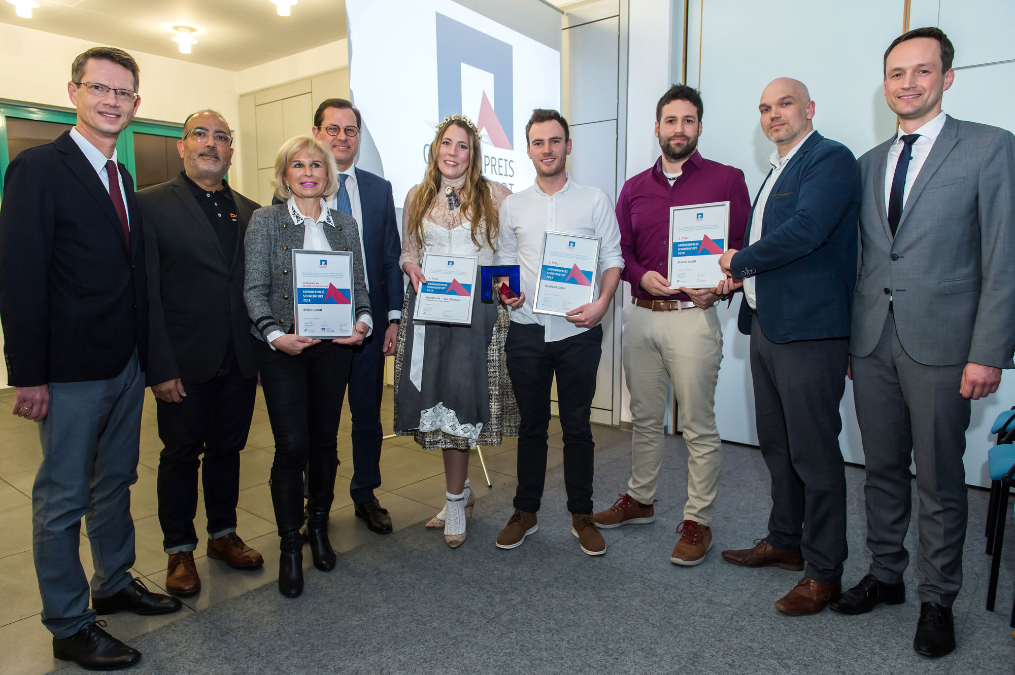 Der dritte Platz des Gründerpreises Schweinfurt 2019 und 2.000 Euro Preisgeld gingen an Eva Gleichmann aus Schonungen mit dem Unternehmen „MainDirndl“. Die Unternehmensgründerin fertigt Designertrachten für Damen, Herren und Kinder. Sie vereinigt in ihrer „Trachtencouture aus Mainfranken“ traditionelles Trachtendesign mit individuellen Stilwünschen der Kunden. Alleinstellungsmerkmal sind exklusiv veredelte Lederschürzen.